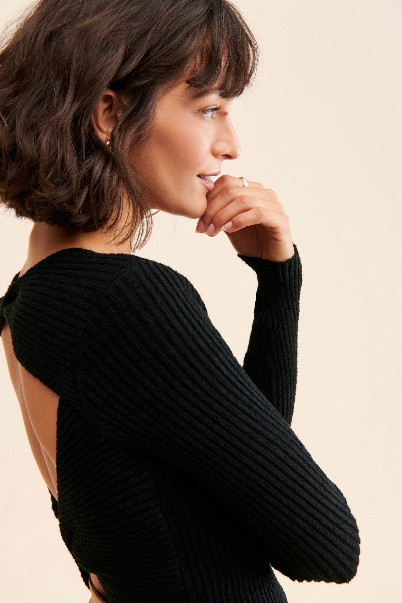 UO Backstage Cowl Twist-Back Cutout Mini Dress