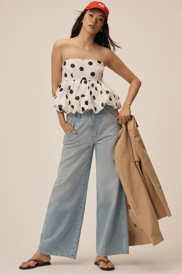 Maeve Scallop-Edge High-Rise Wide-Leg Jeans