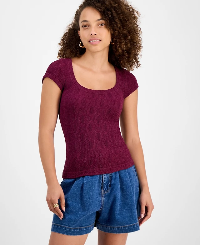And Now This Petite Short-Sleeve Textured Top, Macy's Exclusive