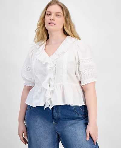 And Now This Trendy Plus Size Ruffled Button-Front Top, Exclusively at Macy's