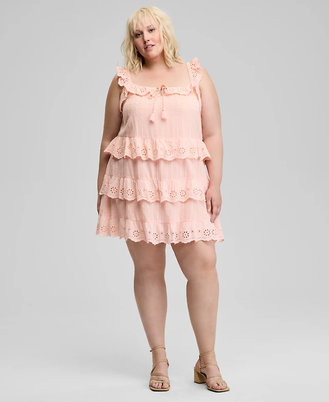 And Now This Trendy Plus Size Eyelet Cotton Sleeveless A-Line Dress, Exclusively at Macy's