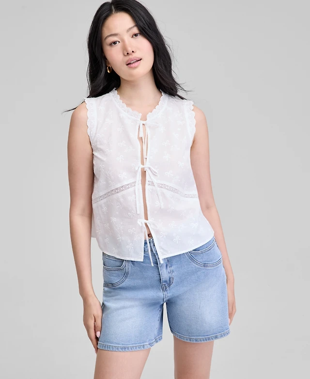 And Now This Women's Cotton Tie-Front Sleeveless Top, Exclusively at Macy's