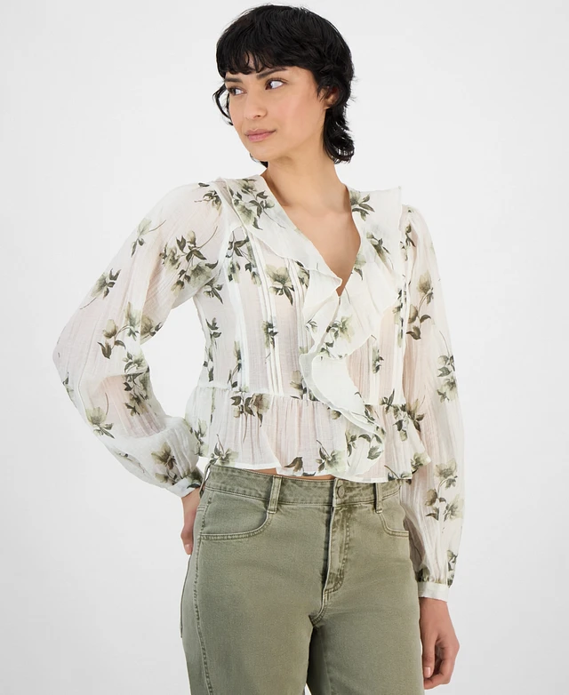 And Now This Women's Floral-Print Ruffled Crinkle Top, Exclusively at Macy's