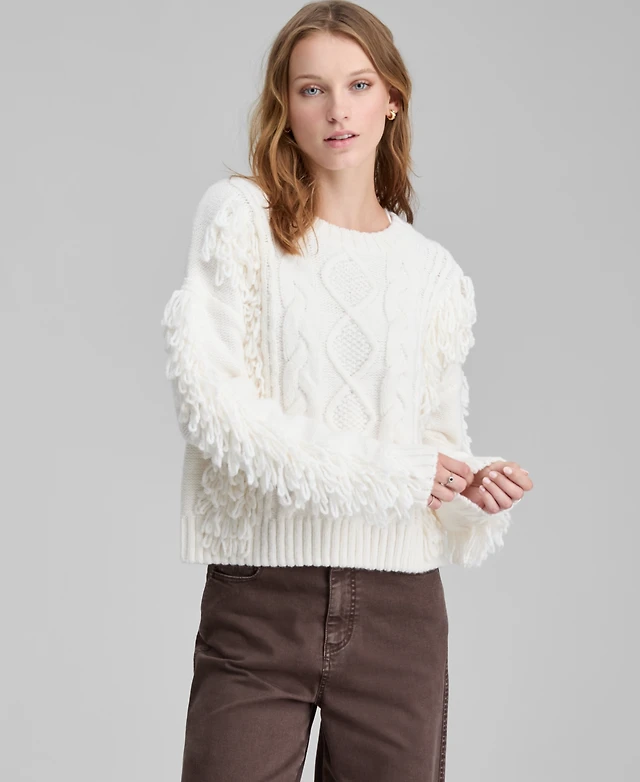And Now This Women's Fringed Cable-Knit Crewneck Sweater, Macy's Exclusive