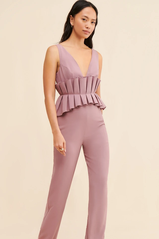 By Anthropologie Smocked Wide-Leg Jumpsuit