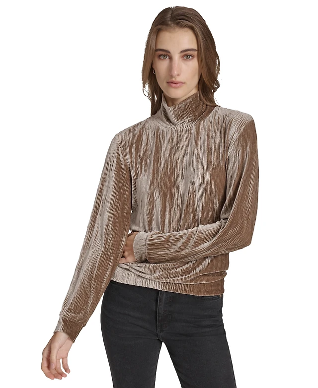 Andrew Marc Sport Women's Wavy Velvet Turtleneck Top