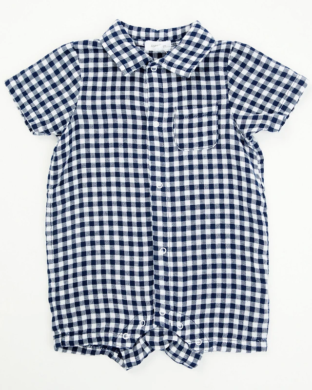 Angel Dear Infant Boys' Gingham Short Sleeve Snap Onesie