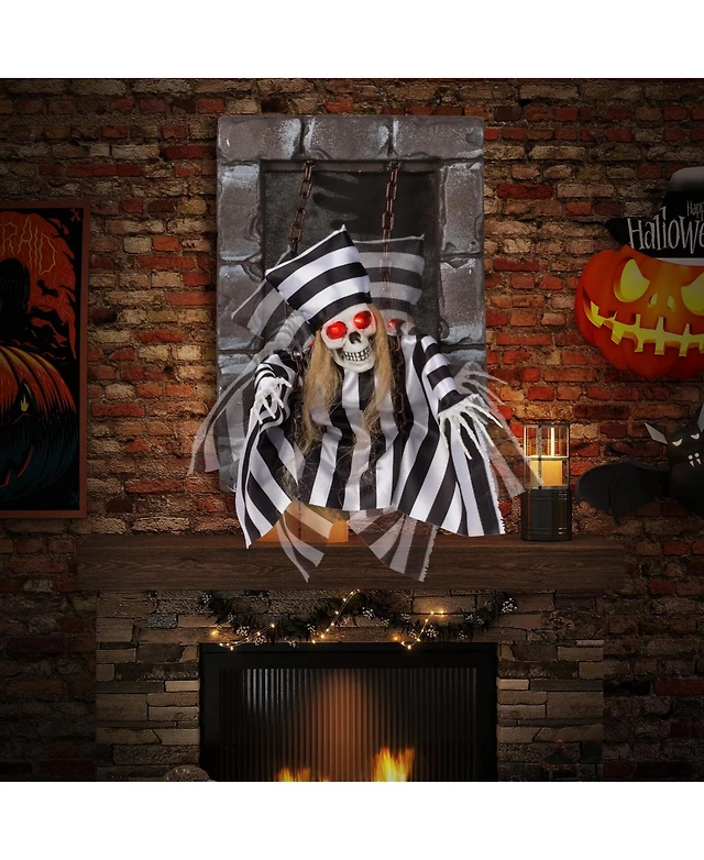 Halloween Hanging Animated Zombie Prisoner Decoration Glowing Eye Indoor Outdoor