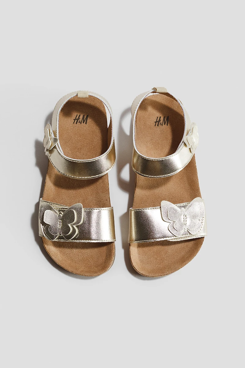 Sandals with adjustable hook-loop fastening at foot strap and ankle strap. Molded insoles and fluted soles.