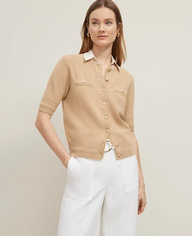 Ann Taylor Blouson Sleeve Stitch Cardigan Women's