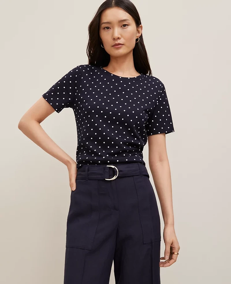 Ann Taylor Dotted Crew Neck T-Shirt Night Sky-White Women's