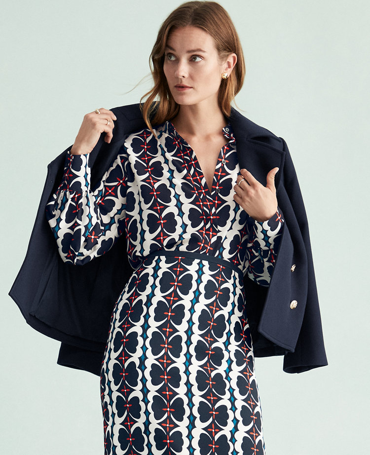 Ann Taylor Geo Border Shirt Night Sky Women's