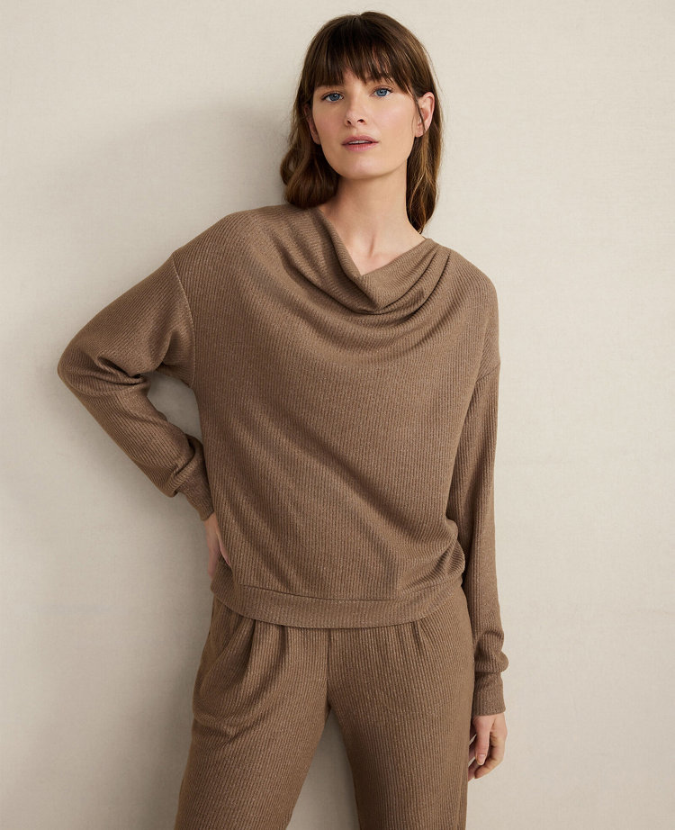 Ann Taylor Haven Well Within Brushed Rib Knit Drape Neck Top Driftwood Women's
