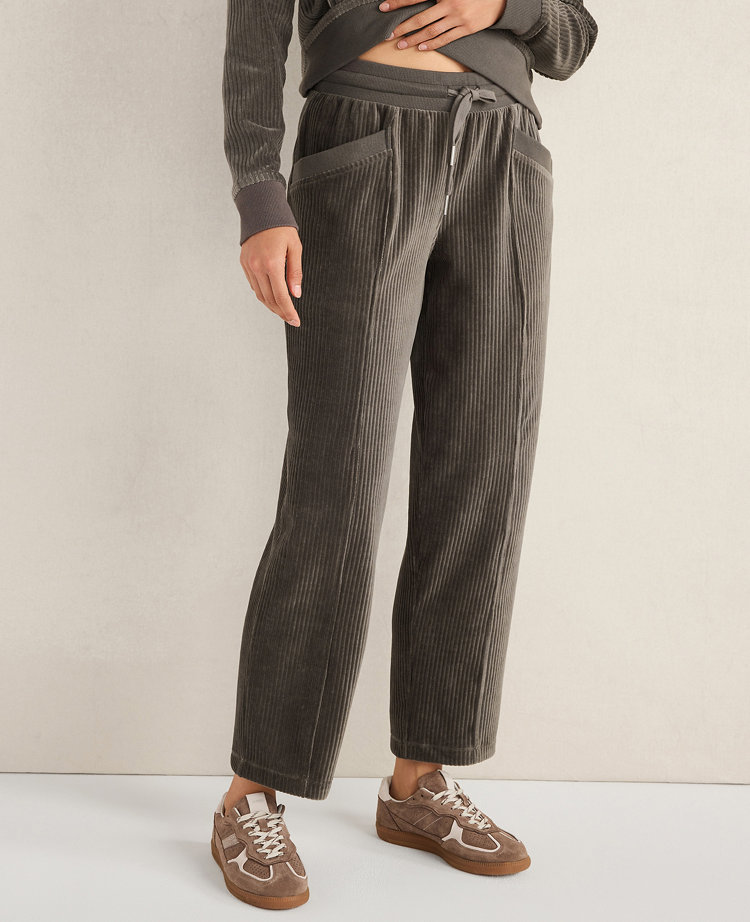 Haven Well Within. A thoughtful collection of lounge, sleep home and lifestyle essentials your trusted resource for all things wellbeing. Decadently - plush velour meets the textured feel of corduroy. These cropped pants are made with an organic cotton blend, drawstring waist and patch pockets. Make it an easygoing set with the matching pullover. Drawstring closure Patch pockets, Hit: Hits at waist, Imported:, Length: Cropped length 26"inseam, Fabrication: 68% Organically Grown Cotton, 29% Polyester, 3% Spandex, Garment Care: Machine Washable Haven Well Within Corded Velour Pants by Ann Taylor Size Classic - XS Rainwash Blue Women's Relaxed, Pants 68% Organically Grown Cotton 29% Polyester 3% Spandex Machine Washable