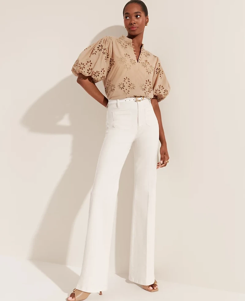 Ann Taylor High Rise Patch Pocket Flare Jeans in Ivory Size 16 Women's