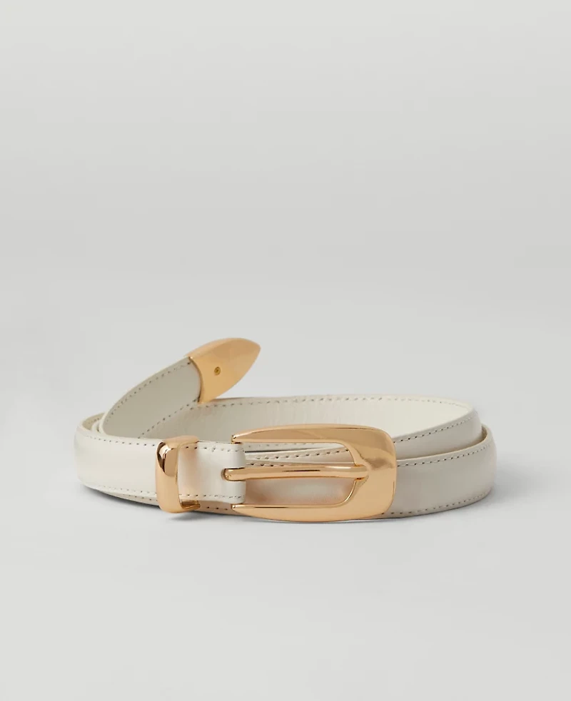 Ann Taylor Metal Tipped Leather Belt Winter White Women's
