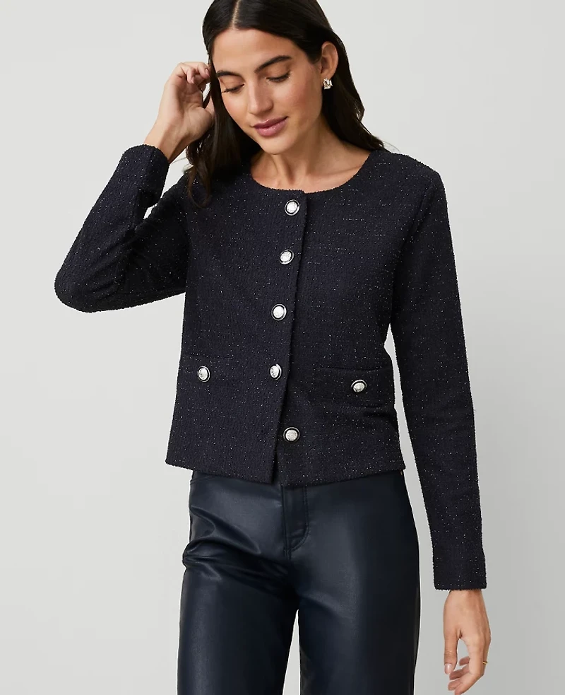 Ann Taylor Metallic Shimmer Button Jacket Size XS Night Sky Women's