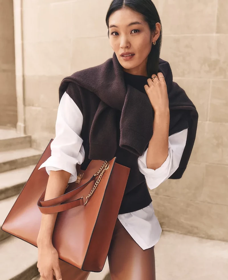 This double duty piece is cleverly constructed with woven sleeves and hem, for a stylish layered effect. Mock neck sleeveless sweater: Woven long sleeves with button cuffs. Woven shirttail hem with button front, Hit: 27"front length; 27 3/4"back length, Imported:, Fit: Softly fitted, Fabrication: Body 46% Cotton, 31% Nylon, 23% Polyester, Woven: 79% Cotton, 18% Nylon, 3% Spandex, Garment Care: Machine Washable Mixed Media Sweater by Ann Taylor Size Classic - Large Pure Chocolate Women's Mock, Neck Long Sleeve Pullover Sweaters Body: 46%, Cotton 31% Nylon 23% Polyester Woven 79%, Cotton 18% Nylon 3% Spandex Machine Washable Best Fall Sweaters