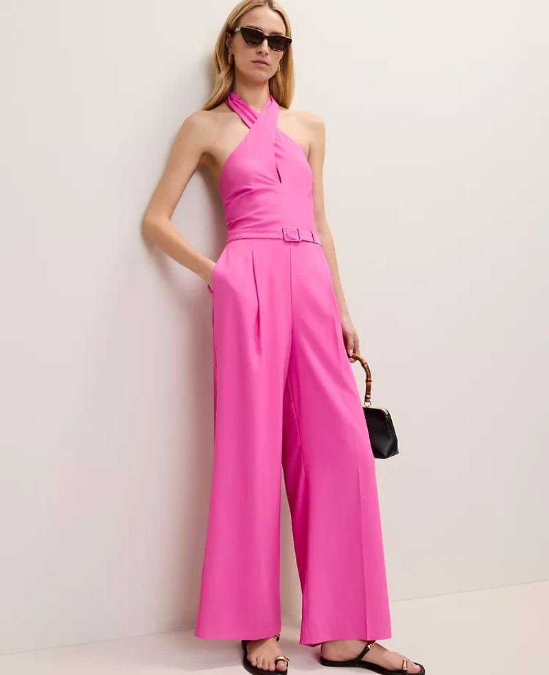 Ann Taylor Petite Belted Halter Jumpsuit Rhododendron Women's