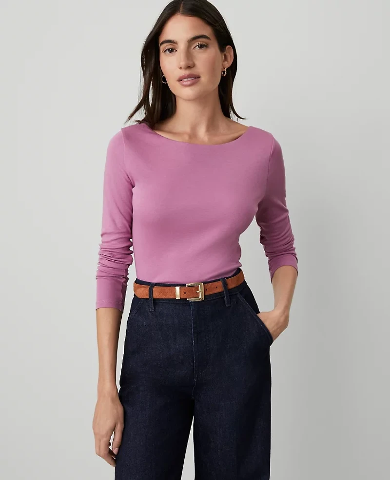 In a soft cotton knit, this low back top is a style essential - in a palette of have - to have hues and patterns. Boatneck Long sleeves Scoop back, Imported:, Fit: Soft & stretchy fit, Length: 23 1/4"long, Fabrication: 100% Cotton, Garment Care: Machine Washable Petite Boatneck Low Back Top by Ann Taylor Size Petite - 2XS Autumn Rose Women's 100%, Cotton Boatneck Long Sleeve Knits Tops 100% Cotton Machine Washable