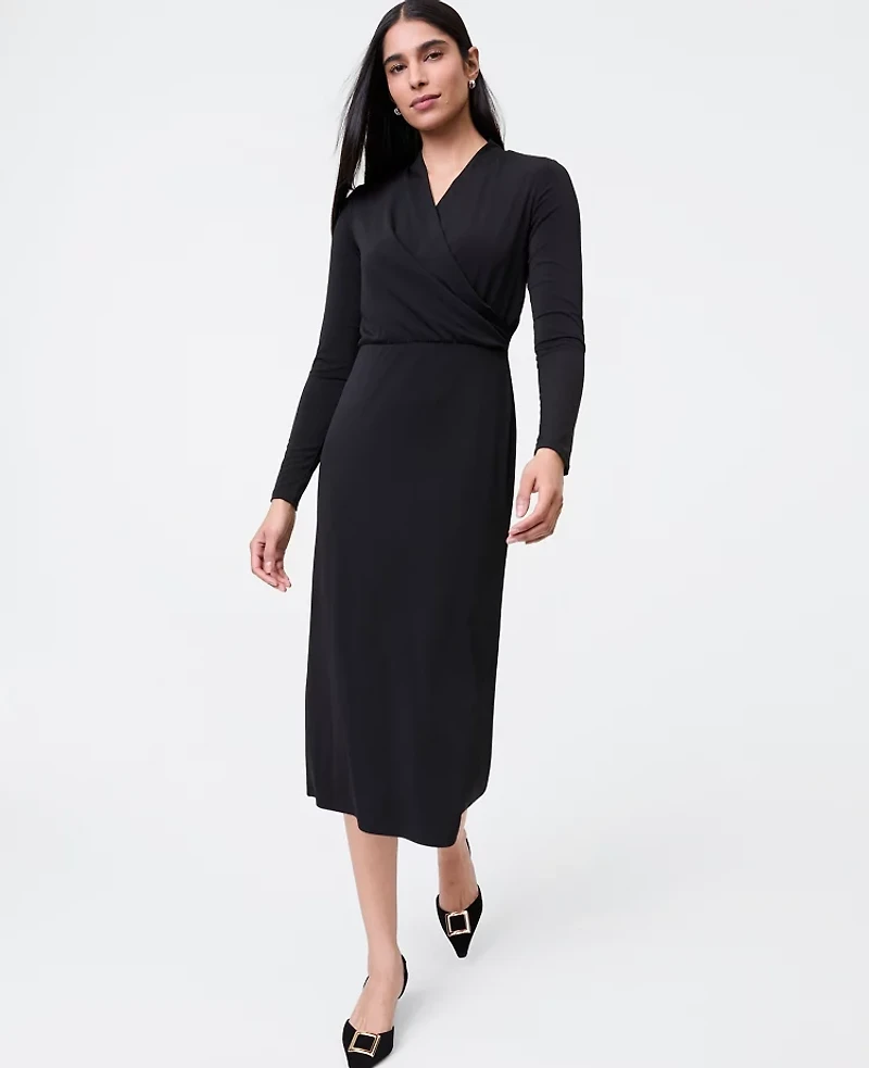 Ann Taylor Petite Draped Knit Midi Sheath Dress Women's