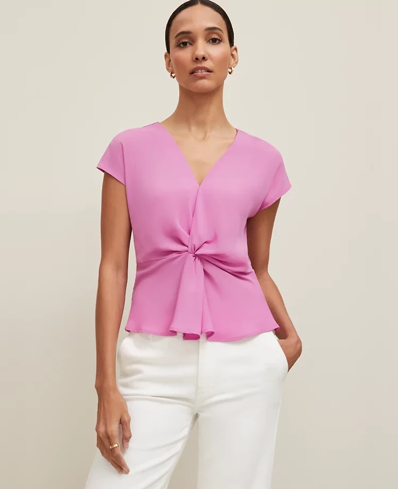 Ann Taylor Petite Knotted V-Neck Top Orchid Glow Women's