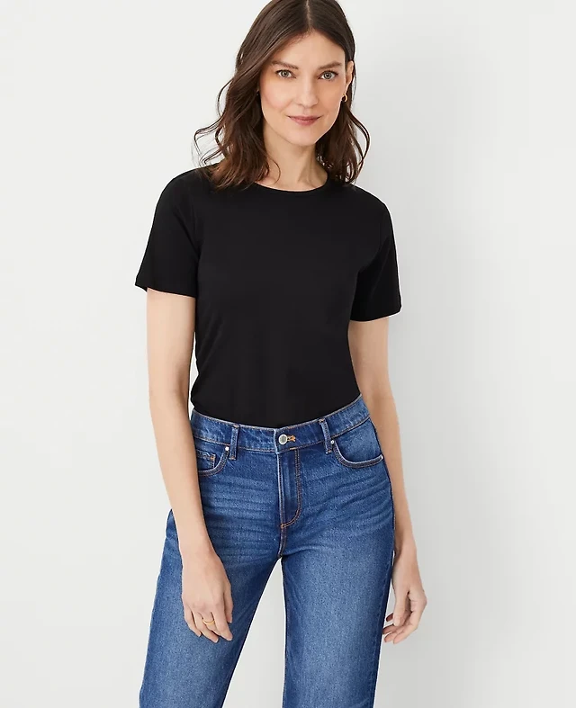 Ann Taylor Pima Cotton Crew Neck T-Shirt Black Women's