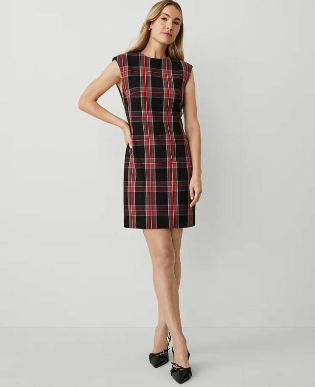 Ann Taylor Petite Plaid Shift Dress Black Women's
