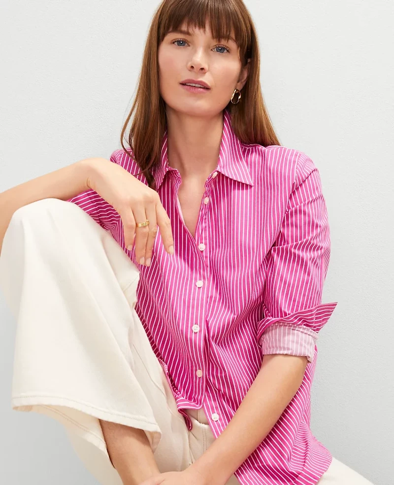 Ann Taylor Petite Striped Relaxed Perfect Shirt Size 2XS Rose Violet Women's
