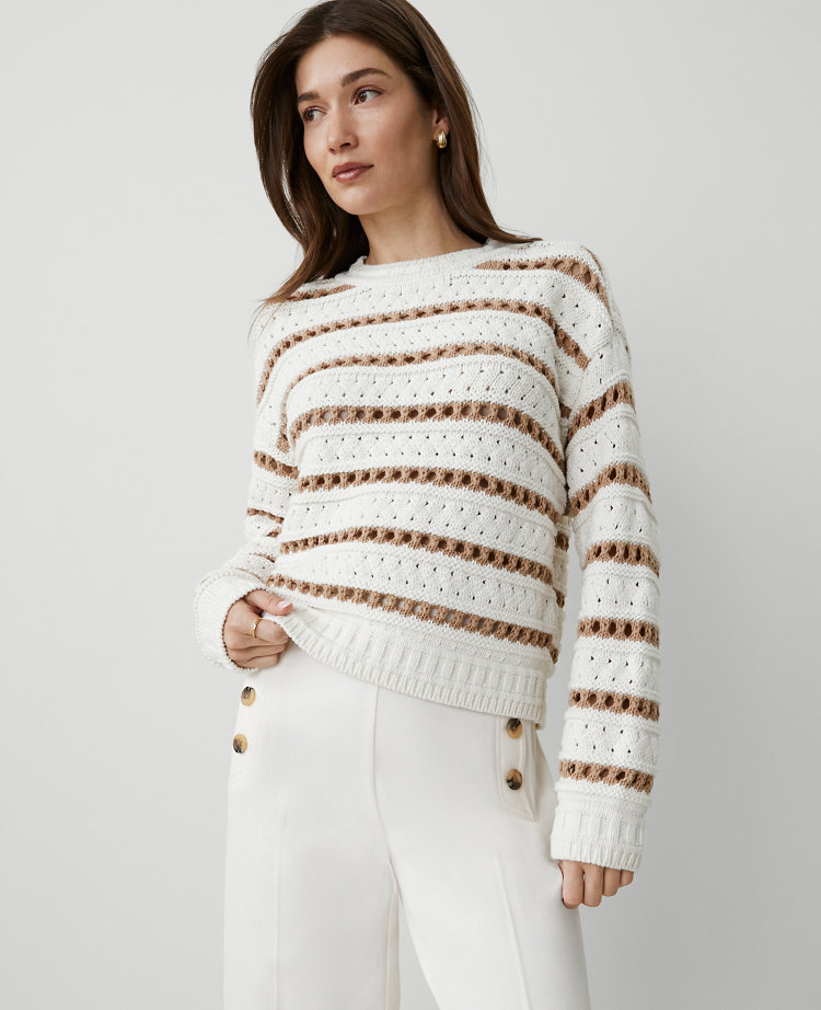 Ann Taylor Petite Striped Stitch Sweater Tan/White Women'sAnn Taylor Petite Striped Stitch Sweater Tan/White Women'sAnn Taylor Petite Striped Stitch Sweater Tan/White Women's