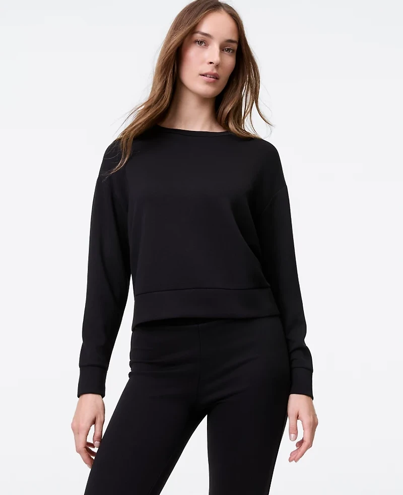 Discover Ann Taylor Weekend. Made from lightweight and touchably soft scuba fabric, this relaxed sweatshirt makes running weekend errands look chic. Crew neck Long sleeves Drop shoulders, Imported:, Length: 21 3/4"long, Fabrication: 85% Rayon, 9% Polyester, 6% Spandex, Garment Care: 85% Rayon, 9% Polyester, 6% Spandex Petite Weekend Collection Cloud Plush Crew Neck Sweatshirt by Ann Taylor Size Petite - 2XS Black Women's Crew, Neck Long Sleeve Sweatshirt Tops 85% Rayon 9% Polyester 6% Spandex 85% Rayon 9% Polyester 6% Spandex