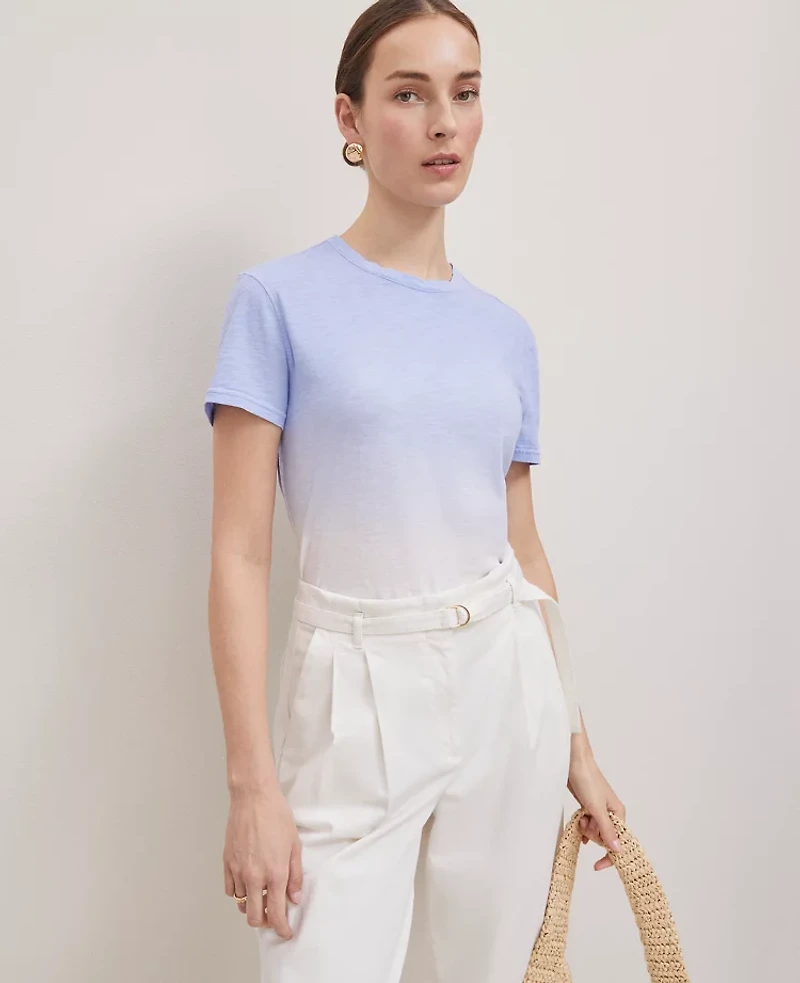 Discover Ann Taylor Weekend. Effortlessly polished pieces for wherever your plans take you. Understated and relaxed in a light linen blend, this tee is one we want in every hue. Round neck Short sleeves, Imported:, Length: 22 1/2 long, Fabrication: 100% Cotton, Garment Care: Machine Washable Petite Weekend Collection Ombr Linen - Blend Tee by Ann Taylor Size Petite - XS Indigo Ombre Women's 100%, Cotton Crew Neck Short Sleeve Tees Tops 100% Cotton Machine Washable