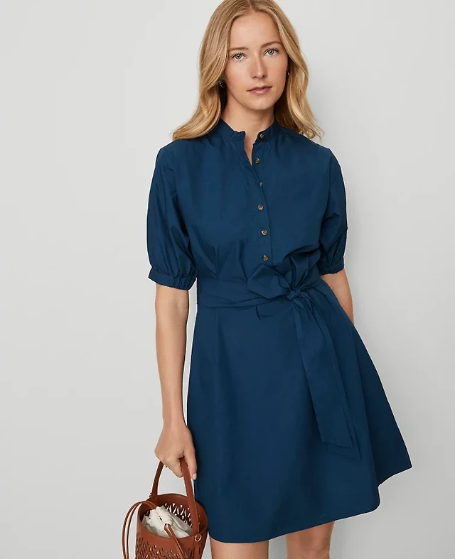 Ann Taylor Weekend Collection Stand Collar Belted Dress Moonlit Backdrop Women's