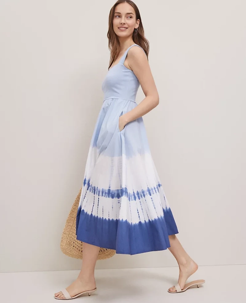 Discover Ann Taylor Weekend. Effortlessly polished pieces for wherever your plans take you. Flattering and versatile, this flowing fit - and flare design dresses up and down with ease. Square neck and back. Sleeveless Side slit pockets., Hit: Hits at mid - calf, Imported:, Length: 31 from natural waist, Fabrication: Knit 92% Supima Cotton, 8% Spandex; Woven: 100% Cotton, Garment Care: Machine Washable Petite Weekend Collection Strappy Flare Midi Dress by Ann Taylor Size Petite - 00 Zephyr Blue Women's Fit, Flare Cotton Blend Regular Scoop Neck Sleeveless Dresses Knit 92%, Supima Cotton 8% Spandex Woven 100%, Cotton Machine Washable