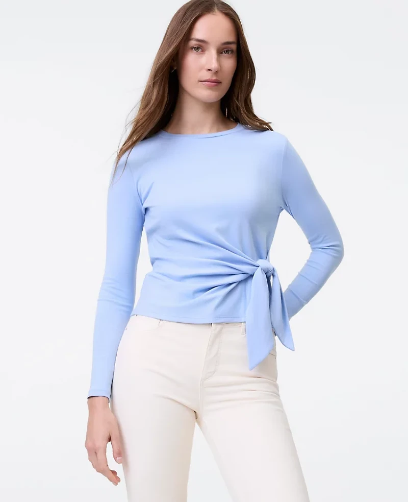 Discover Ann Taylor Weekend. Effortlessly polished pieces for wherever your plans take you. A gathered tied side waist shapes this top with a finish as flattering it is artfully modern. Crew neck Long sleeves, Imported:, Length: 21 1/2"long, Fabrication: 100% Cotton, Garment Care: 100% Cotton Petite Weekend Collection Tie Waist Top by Ann Taylor Size Petite - 2XS Daybreak Dew Women's 100%, Cotton Crew Neck Long Sleeve Tees Tops 100% Cotton 100% Cotton