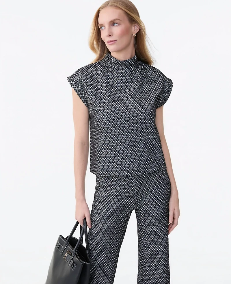 Ann Taylor Plaid Mock Neck Top Black Women's