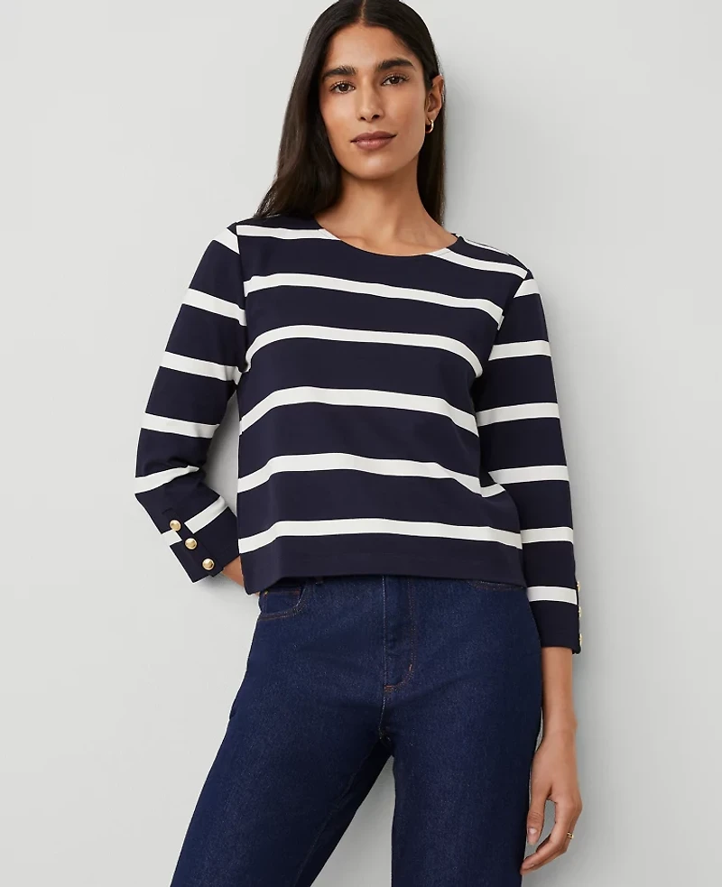 Ann Taylor Striped Ponte 3/4-Sleeve Top Night Sky Women's
