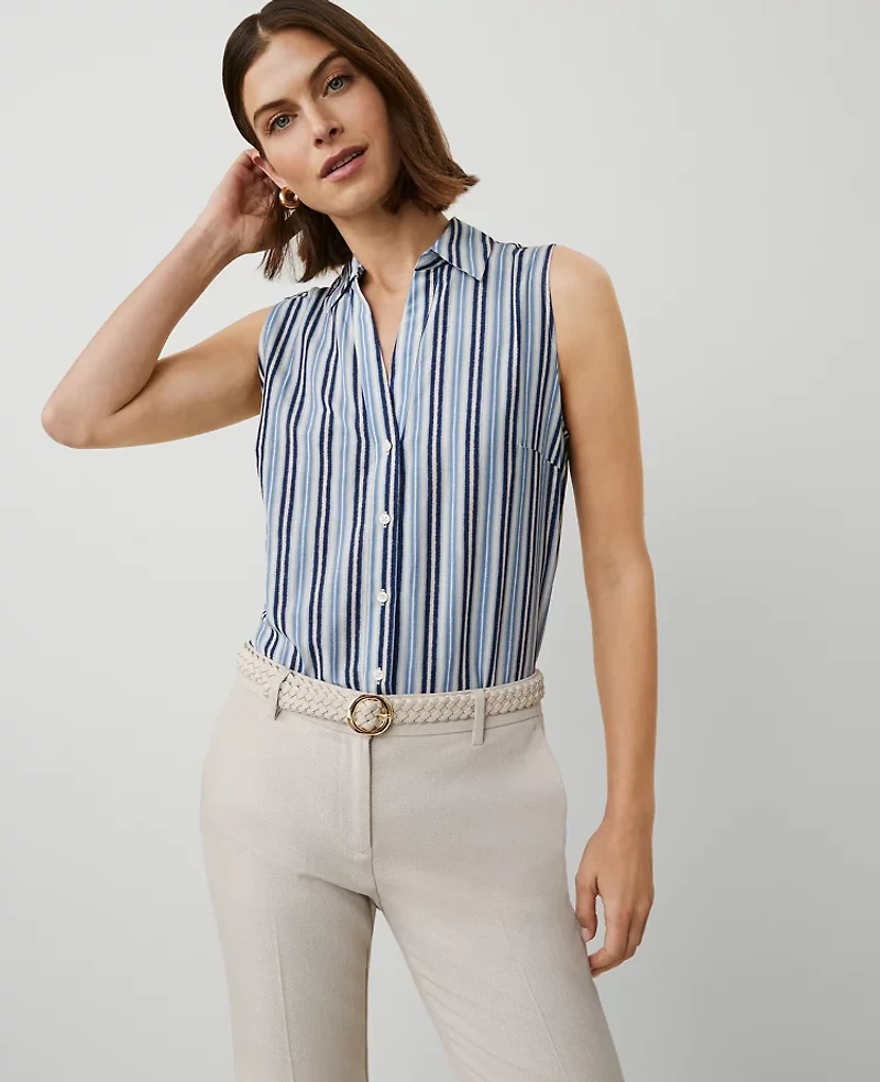 Ann Taylor Striped Sleeveless Essential Shirt Size 2XL Soft Indigo Women's