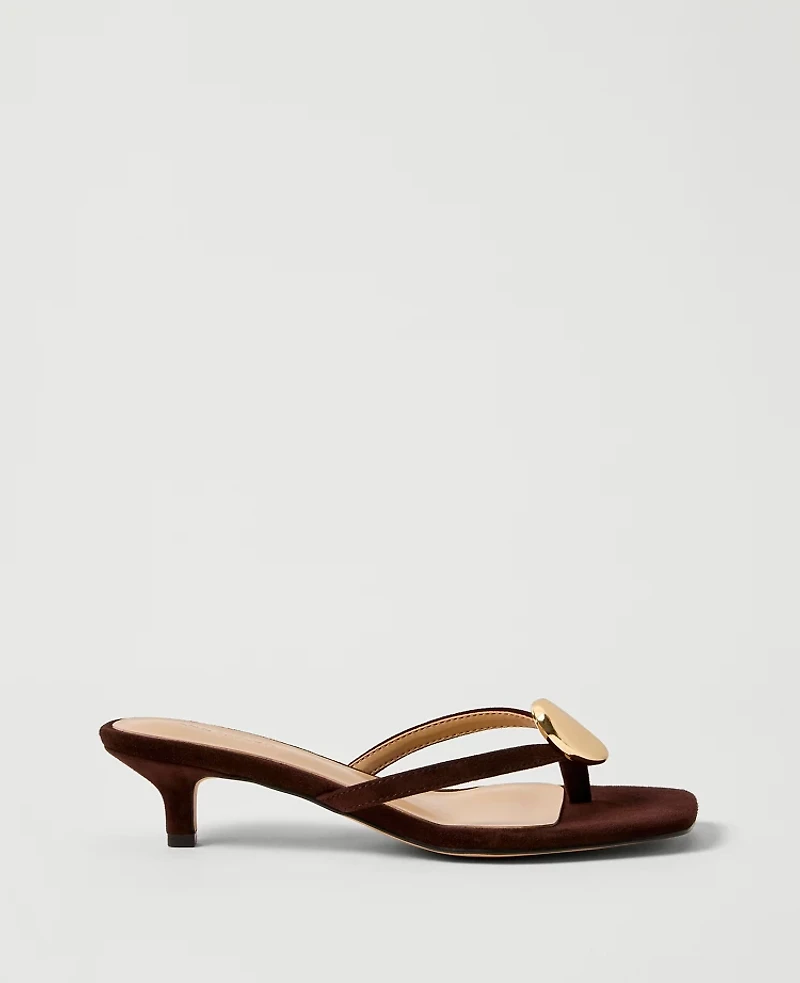 Lifted on a walkable kitten heel, these chic flip flop sandals instantly elevate your favorite warm weather outfits. Padded footbed for comfort. 2 heel, Imported:, Fabrication: Smooth Leather, Garment Care: N / A Suede Flip Flop Heeled Sandal by Ann Taylor Size Classic - 5 Pure Chocolate Women's Low, Sandals Footwear Smooth Leather N / A