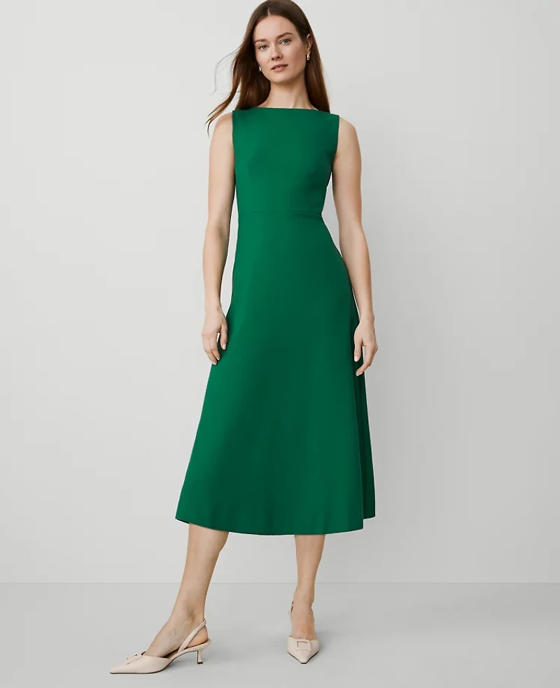 Ann Taylor The Boatneck Midi Dress Textured Drape Fresh Evergreen Women'sAnn Taylor The Boatneck Midi Dress Textured Drape Fresh Evergreen Women's