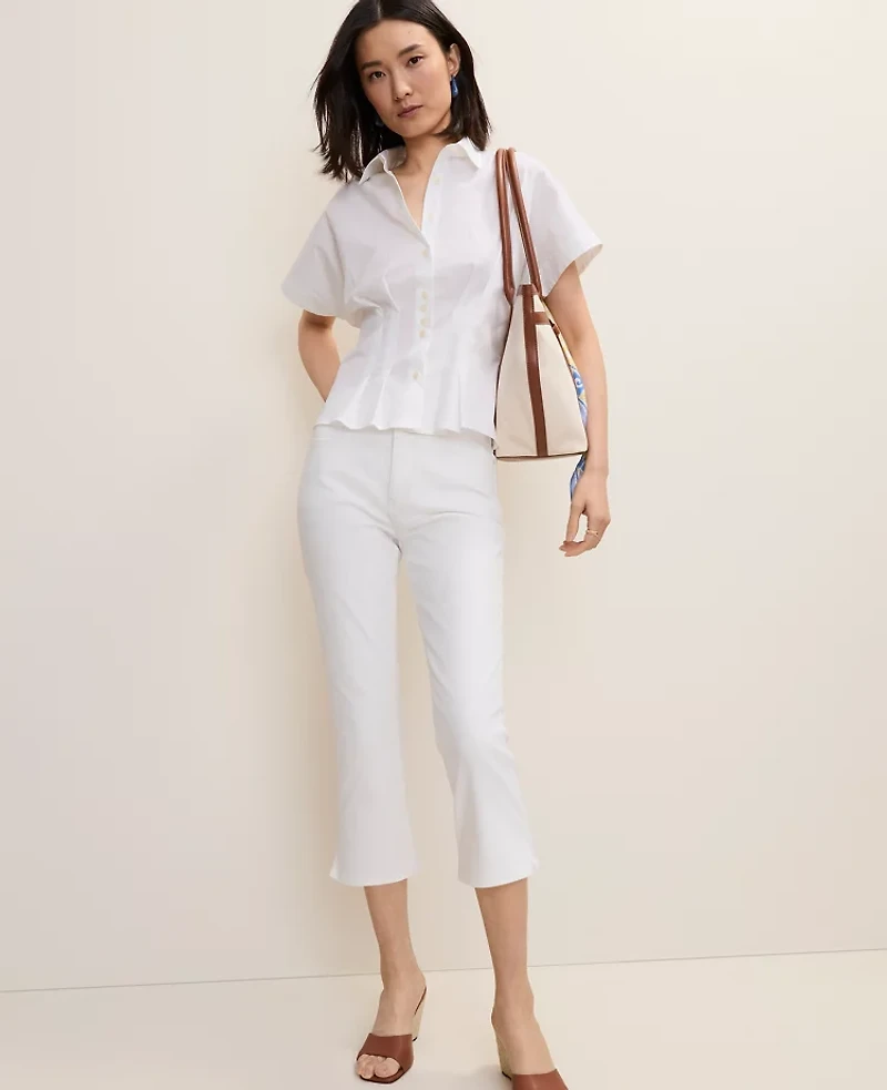 Chic and stylish, these capri jeans are a must - have for any warm weather wardrobe. Front zip with button closure. Belt loops Classic five - pocket styling., Bullet1: For heights 5'4"and below, try our petite fit., Leg Shape: Slim a slim leg that's slightly cropped for perfect proportions, Rise: High rise sits 1/2"to 1 below natural waist, Imported:, Fit: Tailored & fitted, Length: Hits above the ankle: 22"inseam with 15 1/2"leg opening, Fabrication: 98% Cotton, 2% Elastane, Garment Care: Machine Washable The Capri Jean by Ann Taylor Size Classic - 0 White Women's Cotton, Blend Regular Slim Pants 98% Cotton 2% Elastane Machine Washable