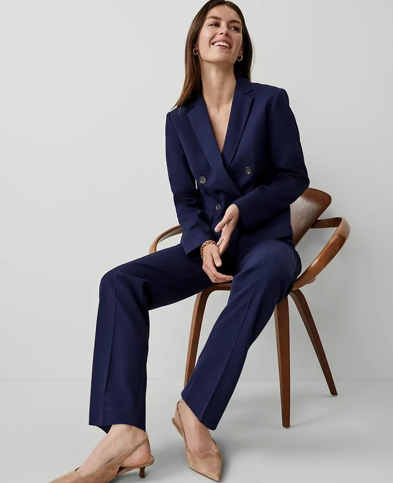 Ann Taylor The Mid Rise Straight Pant Textured Drape Navy Women's in Bloomington, MN