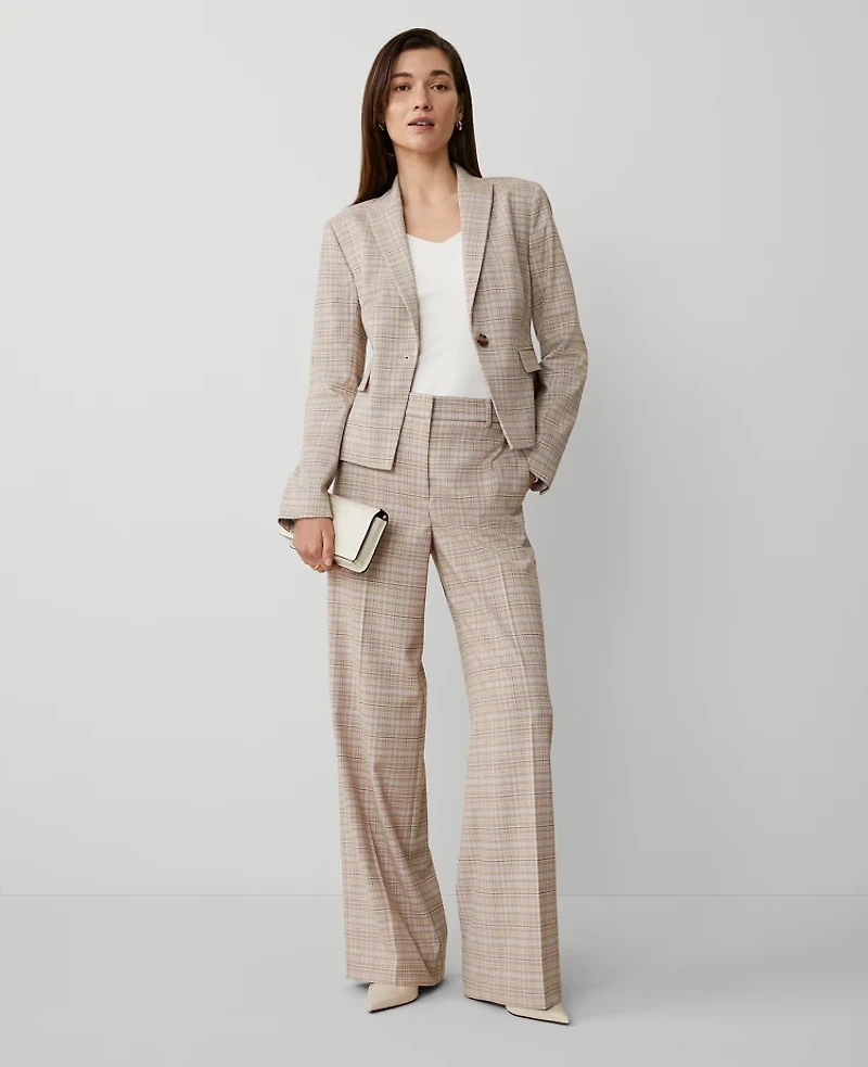 Our plaid wide leg pant is a modern must - have with a perfect drape and high waist that endlessly flatters. Front zip with double hook - and bar closure. Belt loops Front off - seam pockets. Back besom pockets., Leg Shape: Wide Leg a modern must - have with a statement leg and flattering high waist, Rise: High rise sits 1/2"to 1 below natural waist, Imported:, Fit: Tailored & fitted, Length: Full length 32 1/2"inseam with 25"leg opening, Fabrication: 66% Polyester, 32% Rayon, 2% Spandex, Garment Care: Machine Washable The Perfect Wide Leg Pant by Ann Taylor Size Classic - 4 Purple Lilac Women's Regular, Wide Leg Suit Pants 66% Polyester 32% Rayon 2% Spandex Machine Washable