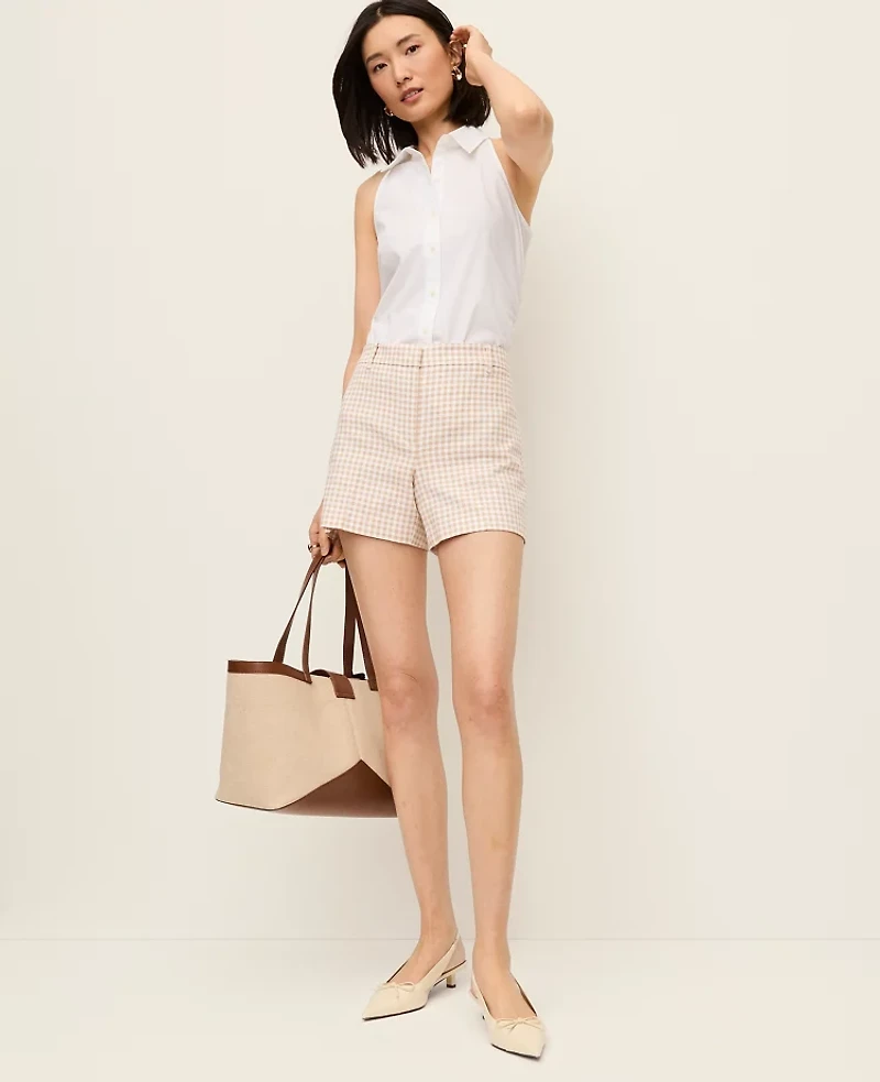 Ann Taylor The Petite City Short Gingham Pale Sandalwood Women's