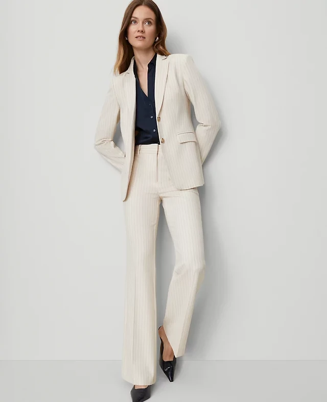 Ann Taylor The Flare Trouser Pinstripe Pale Linen Women's