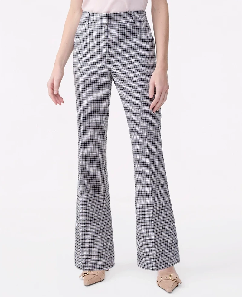A classic leg - lengthening, slightly flared silhouette. Front zip with double hook - and bar closure. Belt loops Front off - seam pockets. Back besom pockets., Leg Shape: Trouser a pant with bit of flare that lengthens legs, Rise: Mid rise sits 2 1/4"below natural waist, Fit: Tailored & fitted, Length: Full length 29"inseam with 20 1/2"leg opening, Fabrication: 65% Polyester, 33% Viscose, 2% Spandex, Garment Care: 65% Polyester, 33% Viscose, 2% Spandex The Petite Jayne Trouser in Houndstooth Curvy Fit by Ann Taylor Size Petite - 00 Blue / Tan Houndstooth Multi Women's Curvy, Trouser Pants 65% Polyester 33% Viscose 2% Spandex 65% Polyester 33% Viscose 2% Spandex