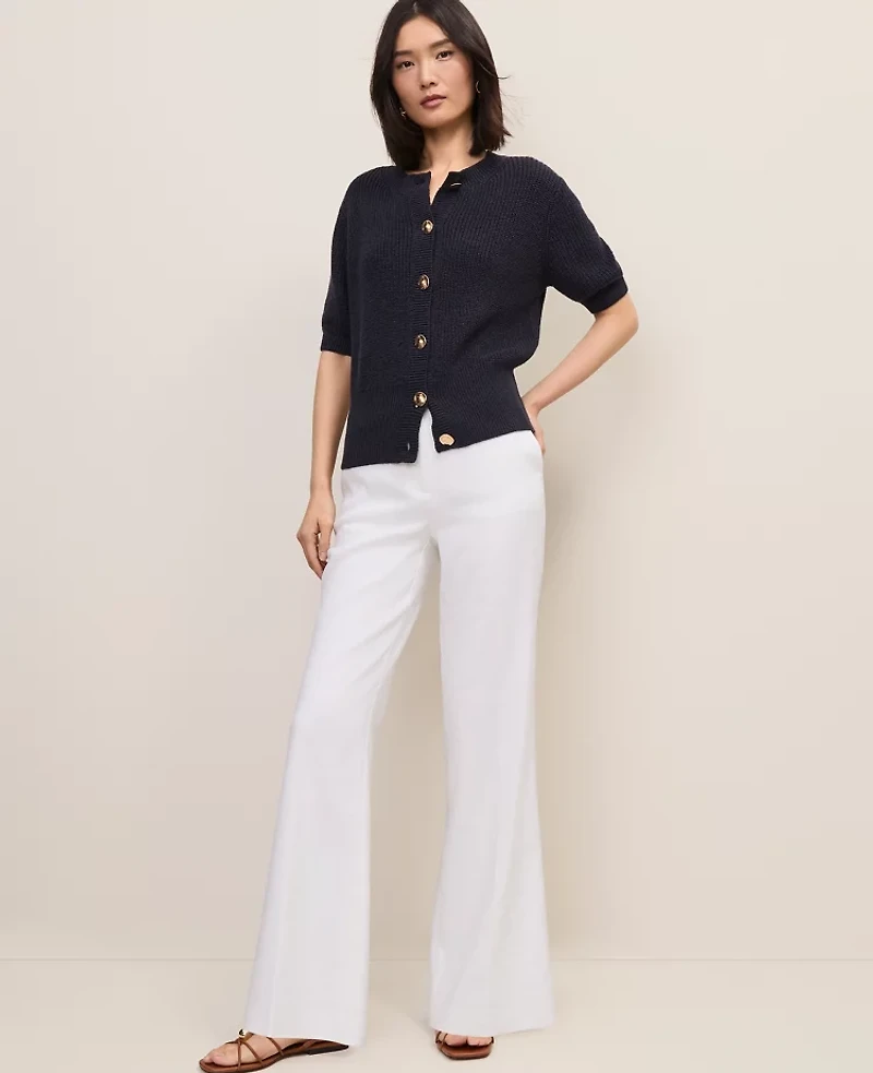 Designed for a flattering streamlined fit, these flared trouser pants are the perfect balance of modern styling and timeless detail. Front zip with hook - and bar closure. Off - seam pockets. Back besom pockets. Lined, Bullet1: For heights 5'4"and below, try our petite fit., Leg Shape: Trouser a pant with bit of flare that lengthens legs, Rise: High rise sits 1/2"to 1 below natural waist, Imported:, Fit: Relaxed & easy, Length: Full length 29"inseam with 21 1/2"leg opening, Fabrication: Shell 54% Linen, 29% Polyester, 15% Viscose, 2% Spandex; Lining: 100% Polyester, Garment Care: Machine Washable The Petite Linen Blend Trouser by Ann Taylor Size Petite - 00 Sail Cloth Women's Linen, Blend Regular Trouser Pants Shell 54%, Linen 29% Polyester 15% Viscose 2% Spandex Lining 100%, Polyester Machine Washable
