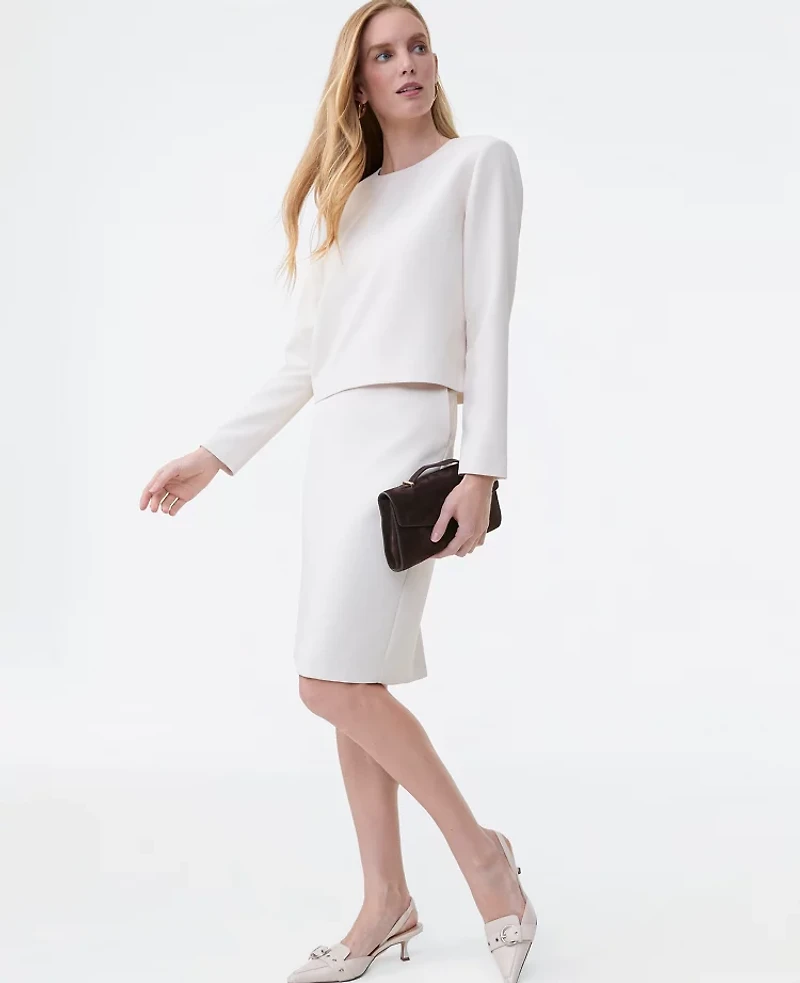 This timeless pencil skirt gives you a perfect pulled - together silhouette. Hidden back zip with hook - and eye closure. Front on - seam pockets. Back vent Lined, Hit: Hits at the knee, Imported:, Fit: Tailored fit, Length: 21 1/2"long, Fabrication: Shell 95% Polyester, 5% Spandex; Lining: 100% Polyester, Garment Care: Shell 95% Polyester, 5% Spandex; Lining: 100% Polyester The Petite Pocket Midi Skirt in Fluid Crepe by Ann Taylor Size Petite - 0 Black Women's Regular, Pencil Suit Skirts Shell 95%, Polyester 5% Spandex Lining 100%, Polyester Shell 95%, Polyester 5% Spandex Lining 100%, Polyester