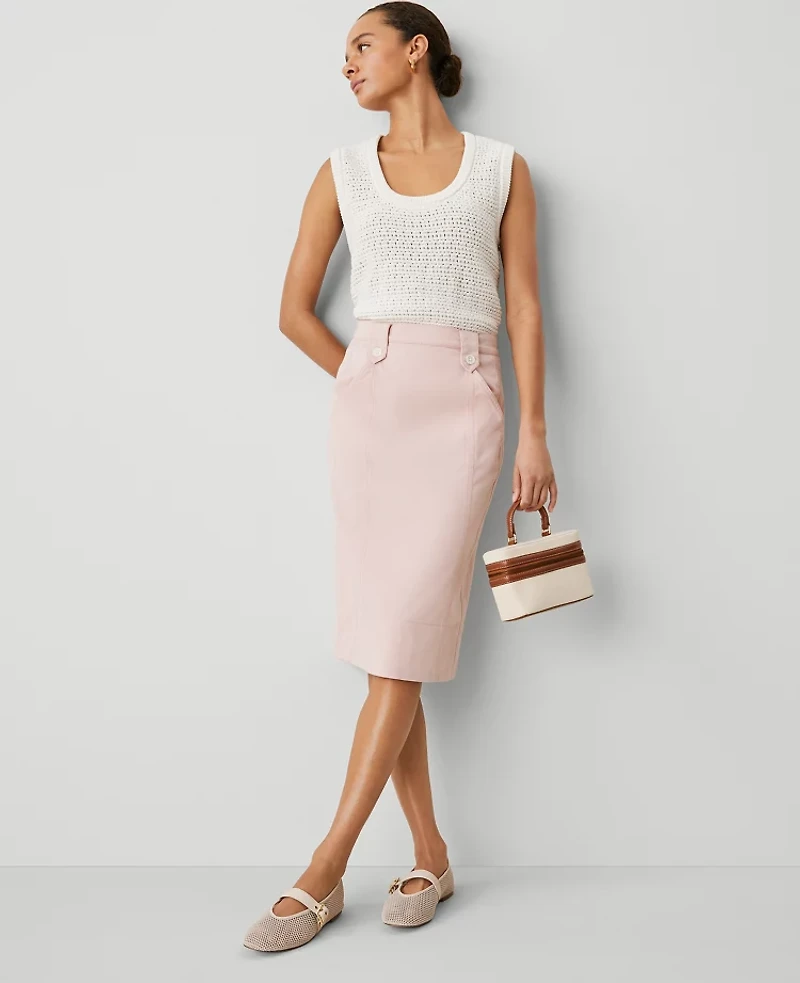 Discover Ann Taylor Weekend. Effortlessly polished pieces for wherever your plans take you. Cargo - style pockets freshen up this polished pencil skirt with a laid - back air of city cool. Buttoned belt loops. Front slash pockets. Hidden back - zip closure., Hit: Hits below the knee, Imported:, Length: 32 1/2 long, Fabrication: 97% Cotton, 3% Spandex, Garment Care: Machine Washable Weekend Collection Cargo Pencil Skirt by Ann Taylor Size Classic - 6 Berry Mousse Women's Cotton, Blend Straight Skirts 97% Cotton 3% Spandex Machine Washable