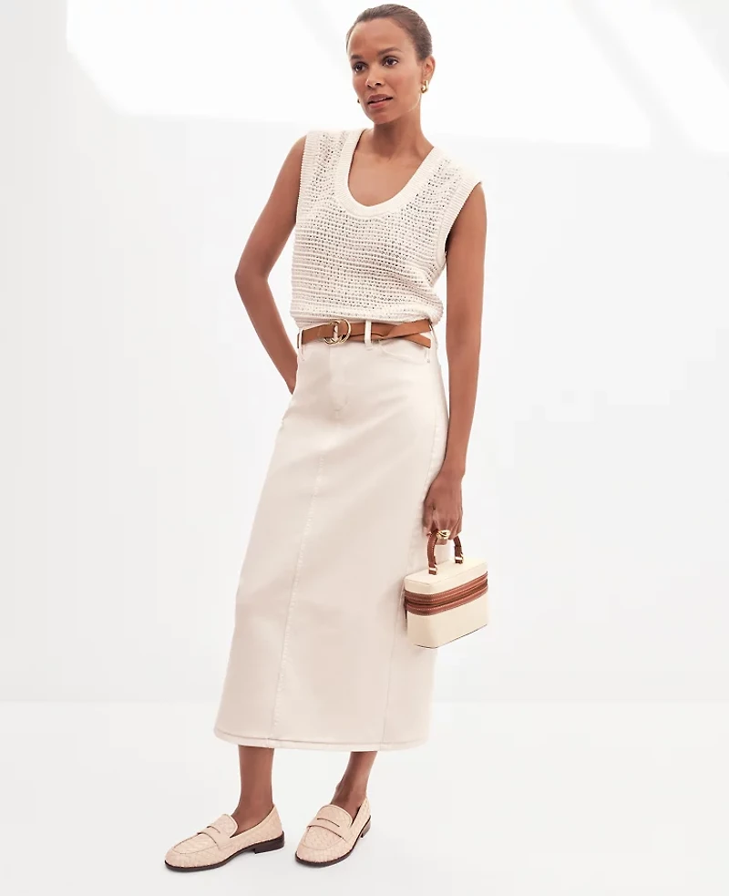 Discover Ann Taylor Weekend. Effortlessly polished, lived - in looks for wherever your plans take you. A smooth column shape keeps this perpetually cool denim skirt polished. Front zip with button closure. Belt loops Classic five - pocket styling. Back vent, Hit: Hits at mid - calf, Imported:, Length: 34 long, Fabrication: 98% Cotton, 2% Spandex, Garment Care: Machine Washable Weekend Collection Denim Column Skirt by Ann Taylor Size Classic - 12 Ivory Women's Cotton, Blend Straight Skirts 98% Cotton 2% Spandex Machine Washable